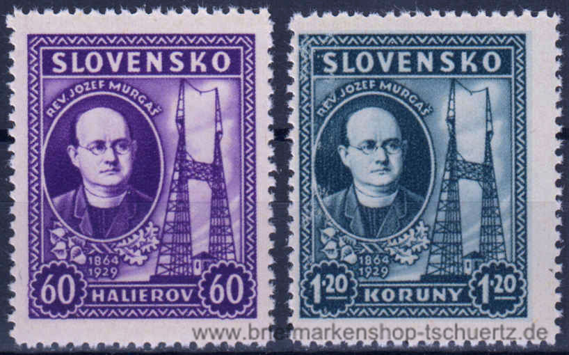 1939, Jozef Murgasohne WasserzeichenSatz (2 W.), postfrisch