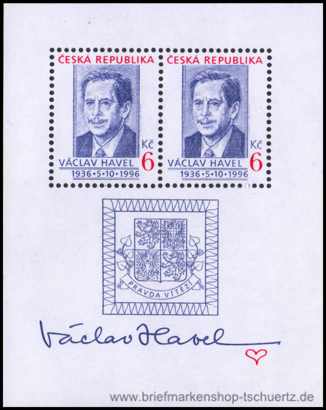 1996, Vaclav HavelBlockausgabe, postfrisch