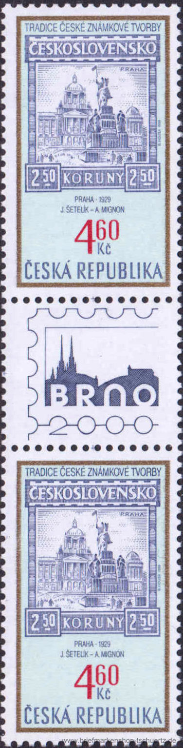 1999, Tradition tschechischer BriefmarkengestaltungDreierstreifen mit Zierfeld, postfrisch
