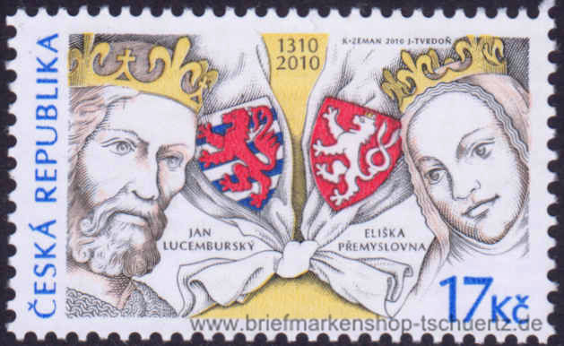 2010, Besteigung des böhmischen Throns durch das Haus Luxemburg Satz (1 W.), postfrisch