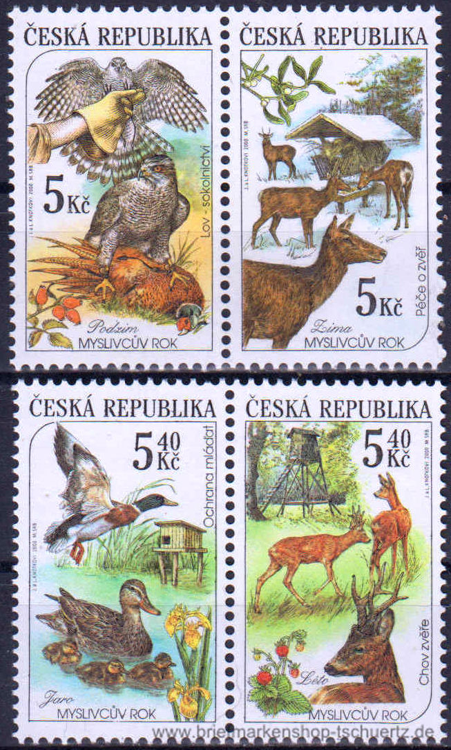 2000, Jagd und WildpflegeSatz (4 W.), zwei Paare, postfrisch