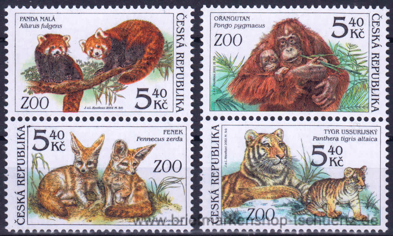 2001, Naturschutz: ZootiereSatz (4 W.), zwei senkrechte Paare als Zusammendruck, postfrisch