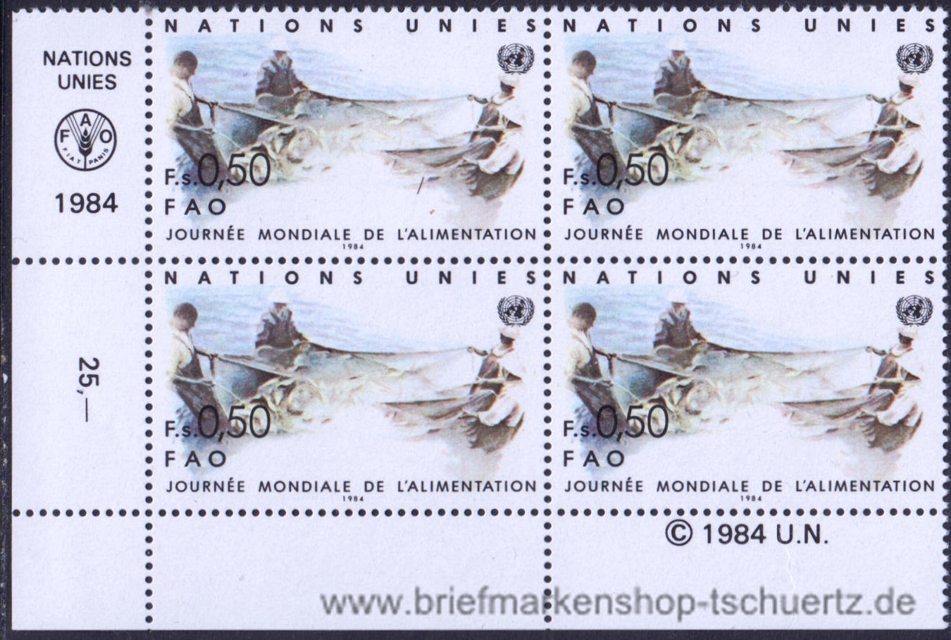 1984, Welternährungstag Satz (2 Eckrandviererbl.), postfrisch