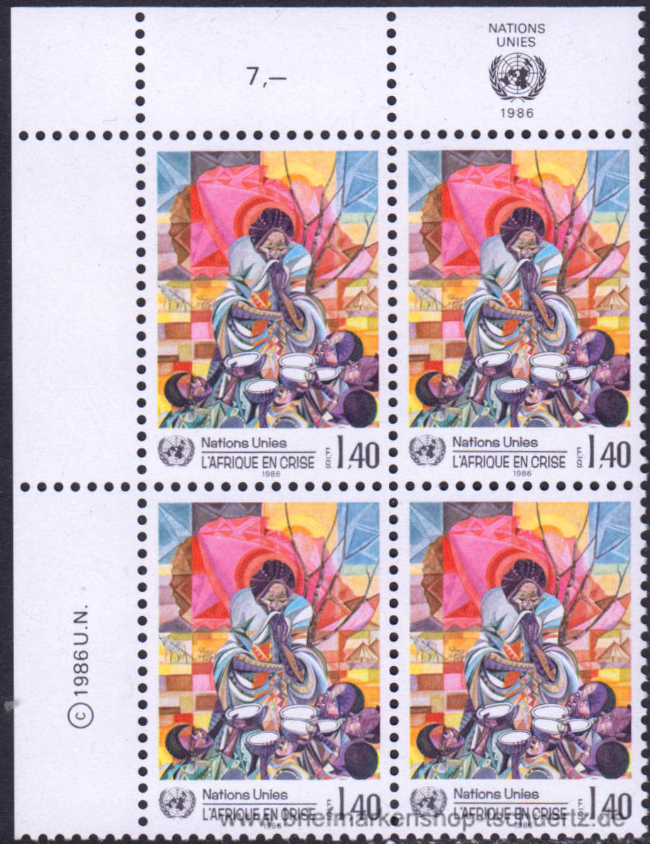 1986, Afrika in Not Satz (1 Eckrandviererbl.), postfrisch