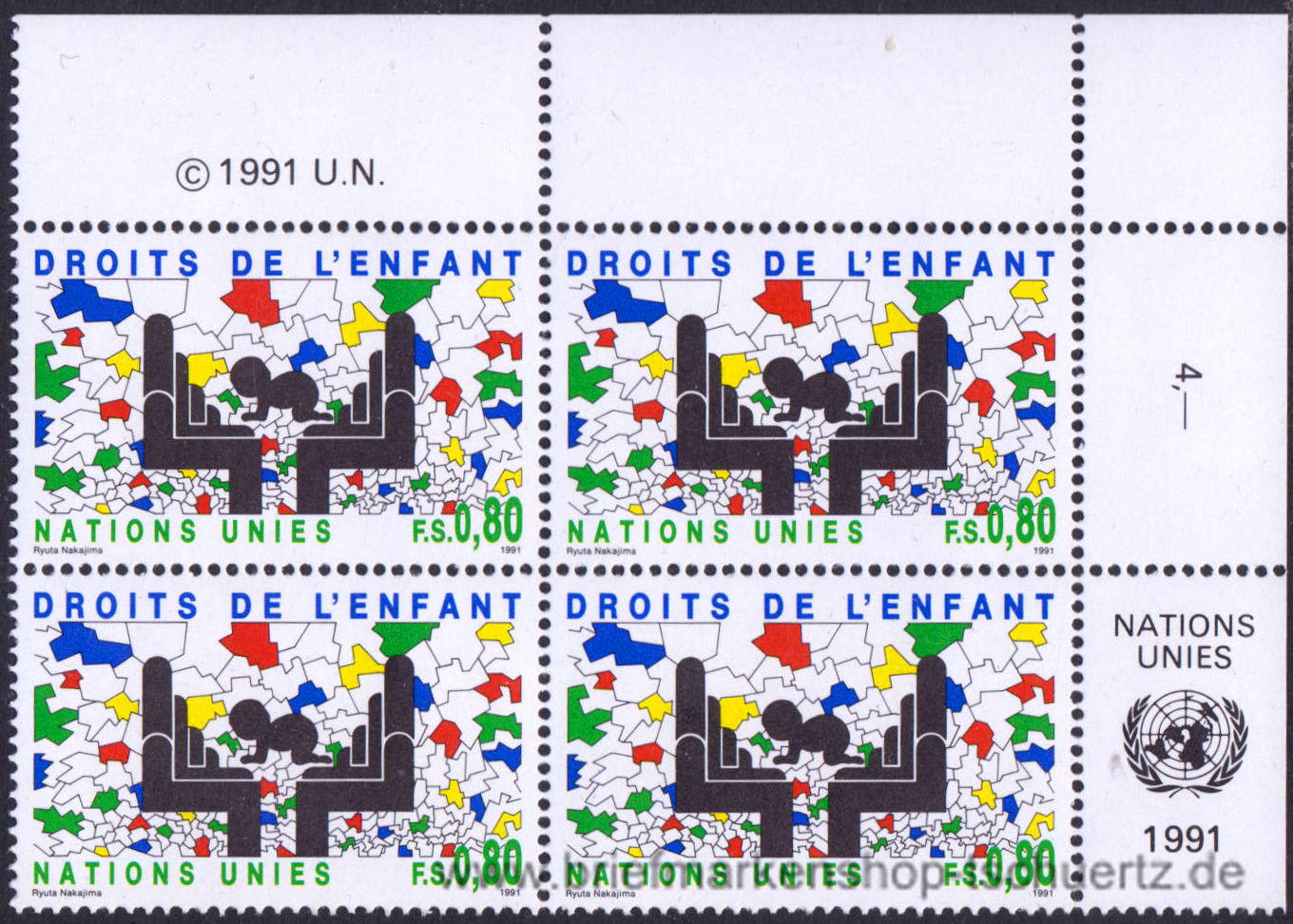 1991, Rechte des Kindes Satz (2 Eckrandviererbl.), postfrisch