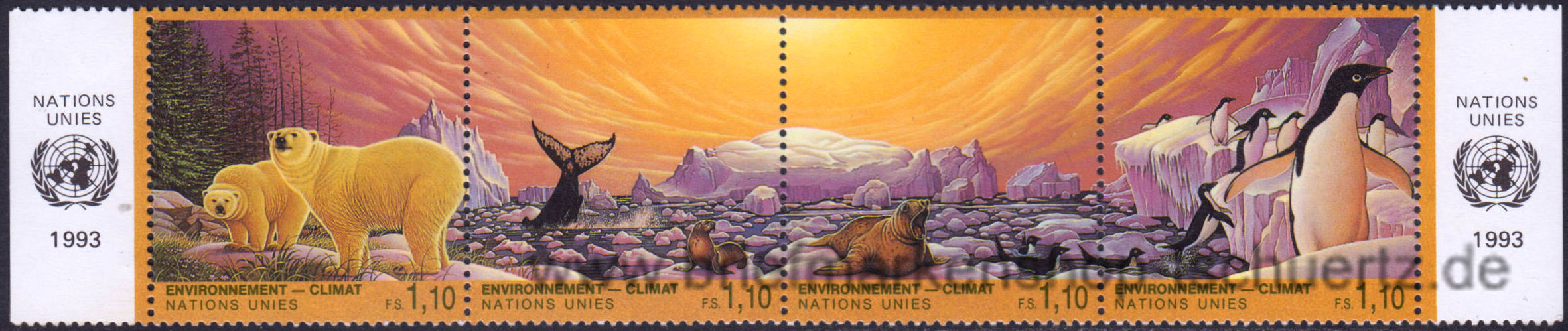 1993, Klimaveränderungen Satz (4 W.), Viererstreifen mit Randzierfeldern links und rechts, postfrisch