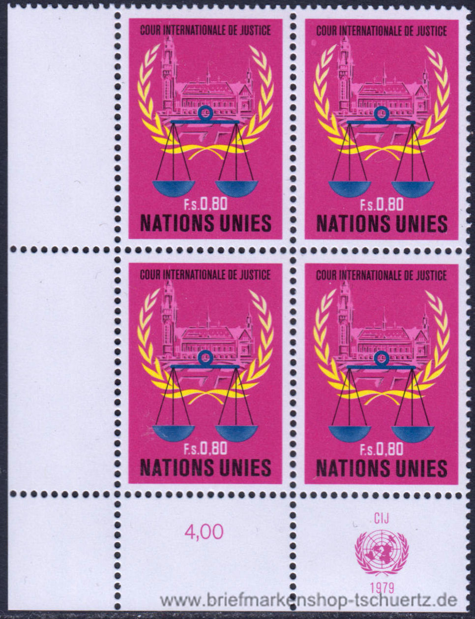 1979, Internationaler Gerichtshof, Den Haag Satz (2 Eckrandviererbl.), postfrisch