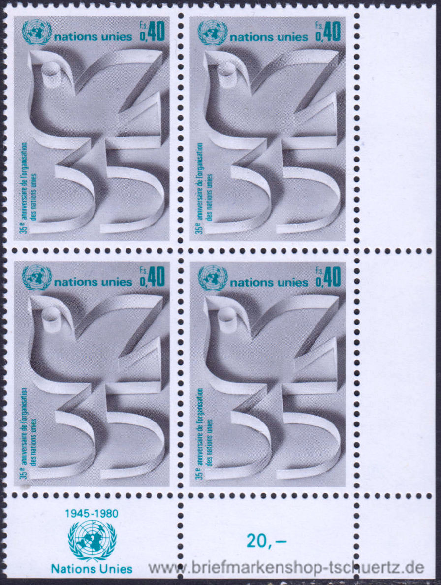 1980, 30 Jahre UNO Satz (2 Eckrandviererbl.), postfrisch