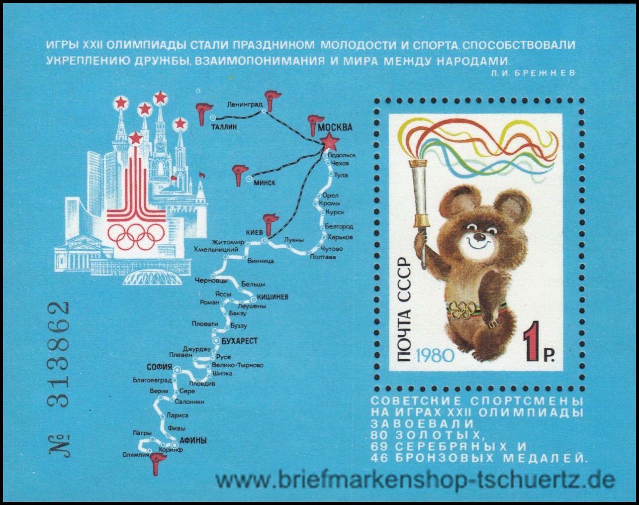 1980, Erfolge sowjetischer SportlerBlockausgabe, postfrisch