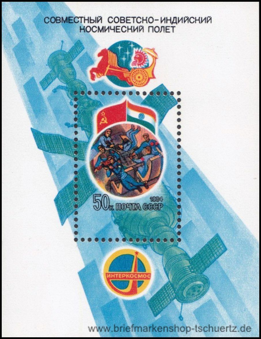 1984, Gemeinsame Weltraumforschung UdSSR-IndienBlockausgabe, postfrisch