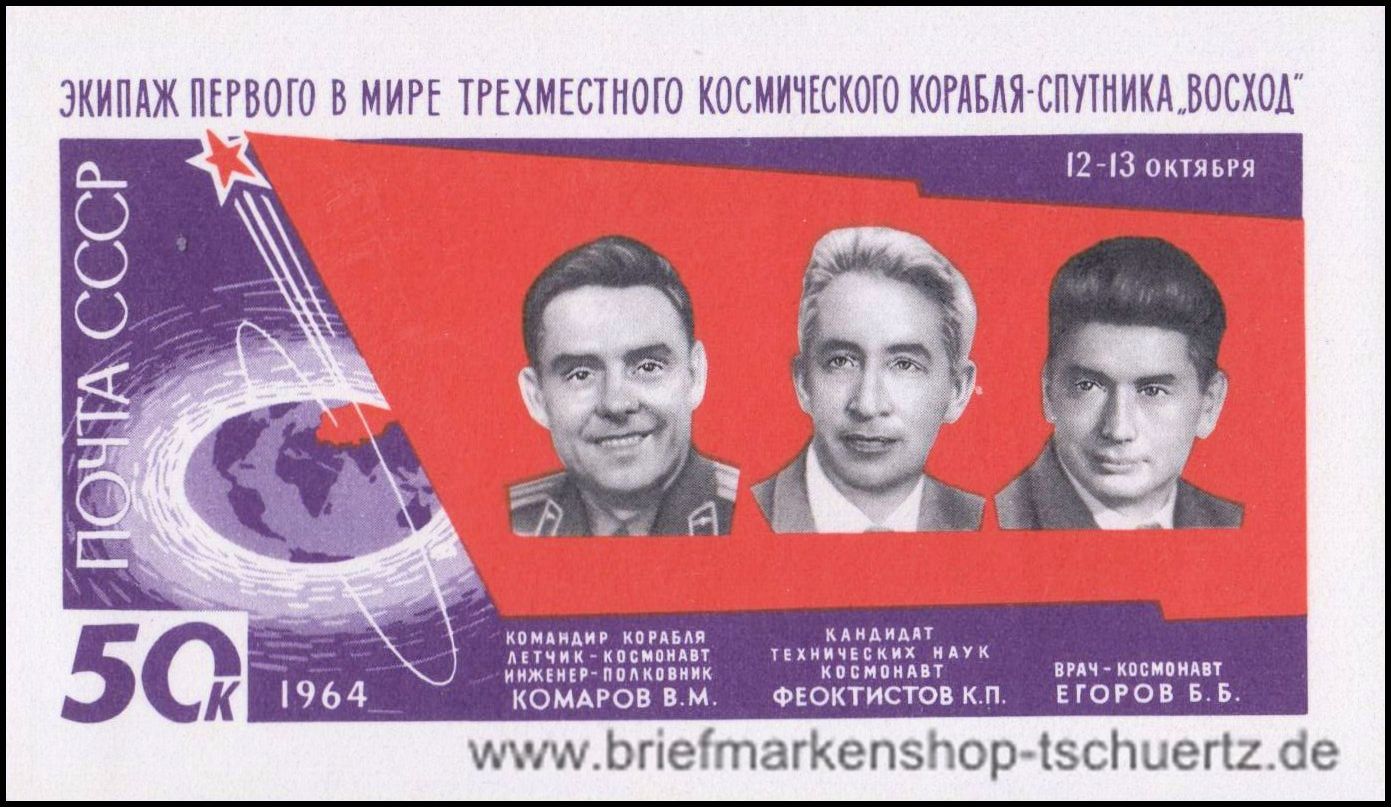 1964, Start des Raumschiffes Woschod 1Blockausgabe, postfrisch
