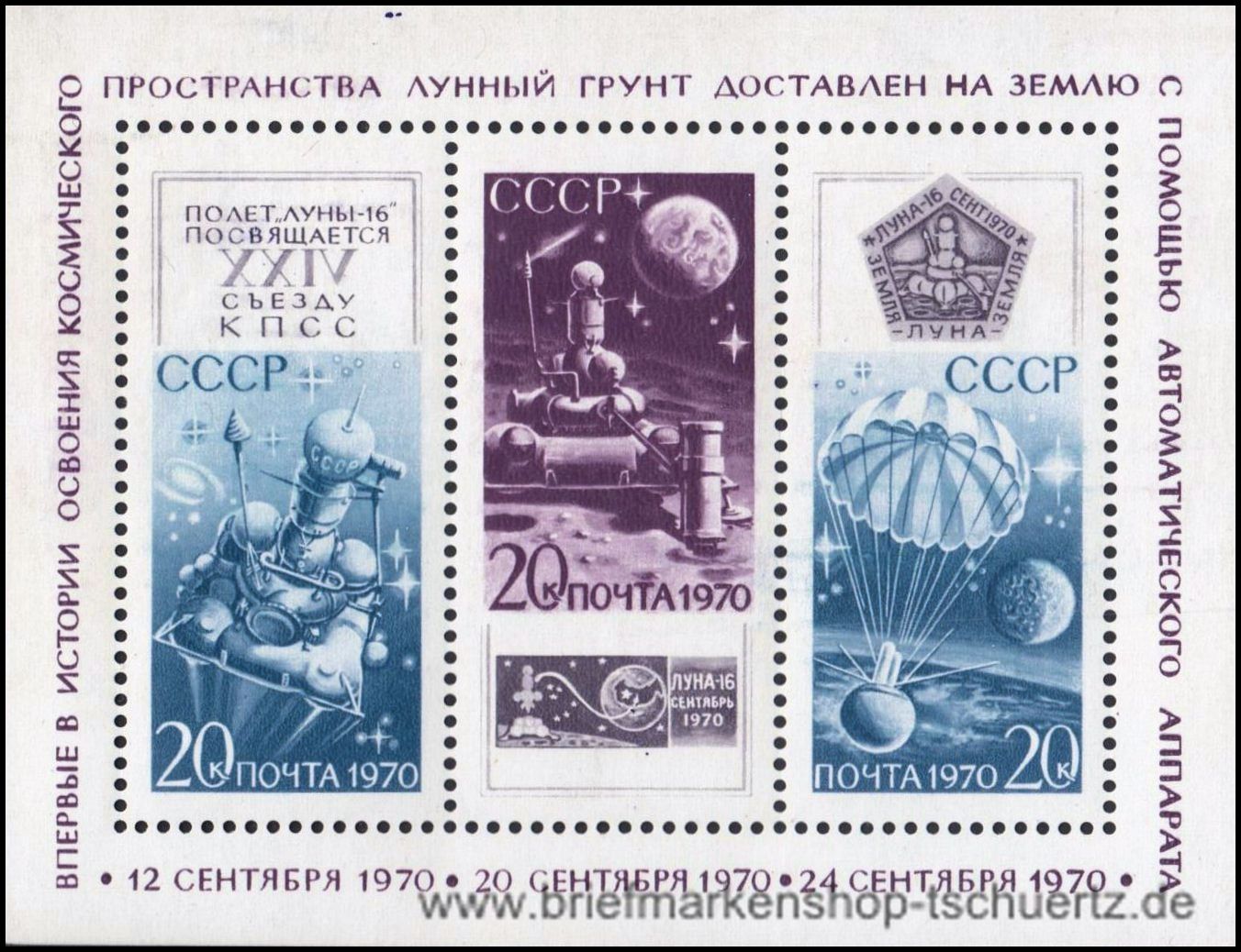1970, Mondsonde Luna 16Blockausgabe, postfrisch