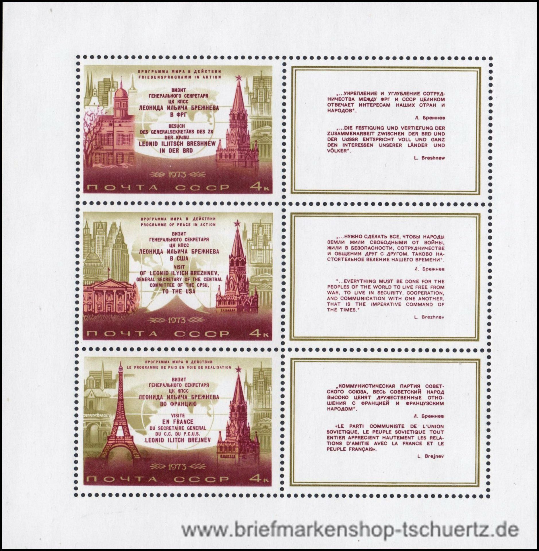 1973, Staatsbesuche von BreschnewBlockausgabe, postfrisch