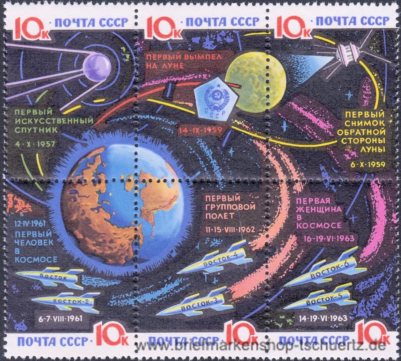 1964, Weltraumforschungnormales PapierSatz (6 W.), Zusammendruck aus Block, postfrisch