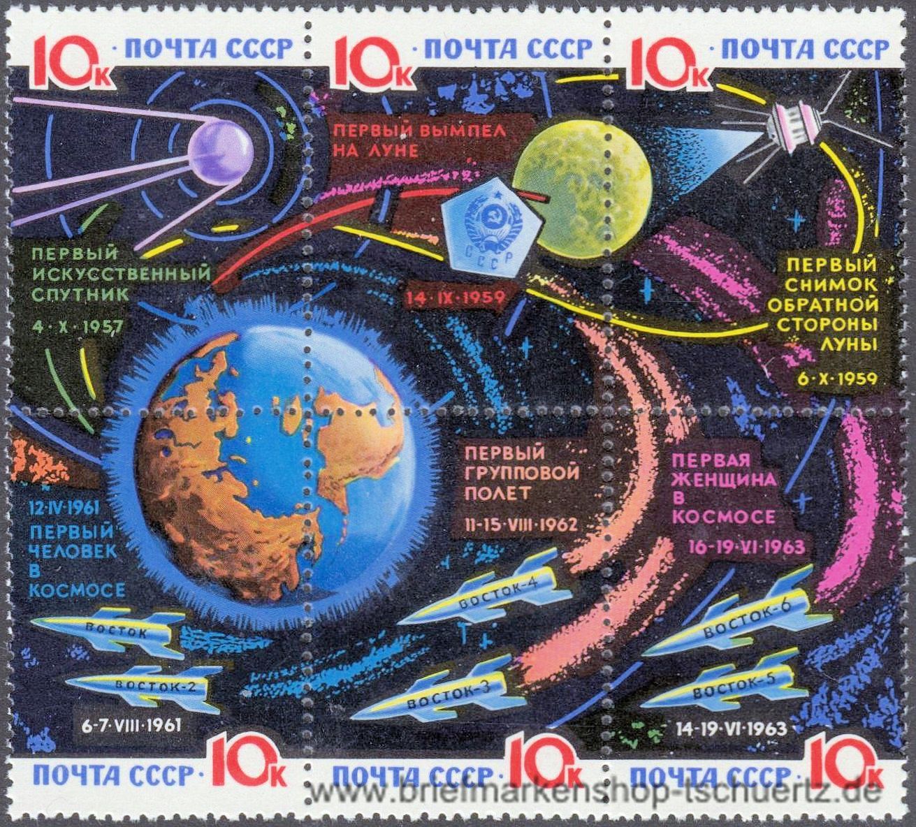 1964, WeltraumforschungLackpapierSatz (6 W.), Zusammendruck aus Block, postfrisch