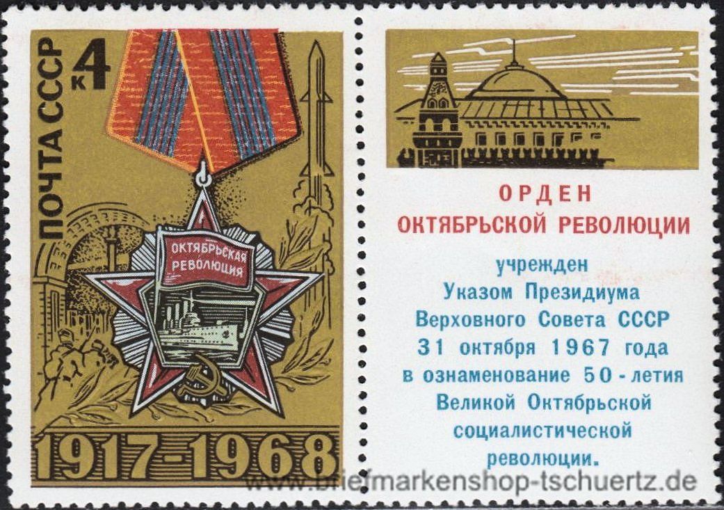 1968, OktoberrevolutionSatz (1 W.), Marke mit Zierfeld, postfrisch