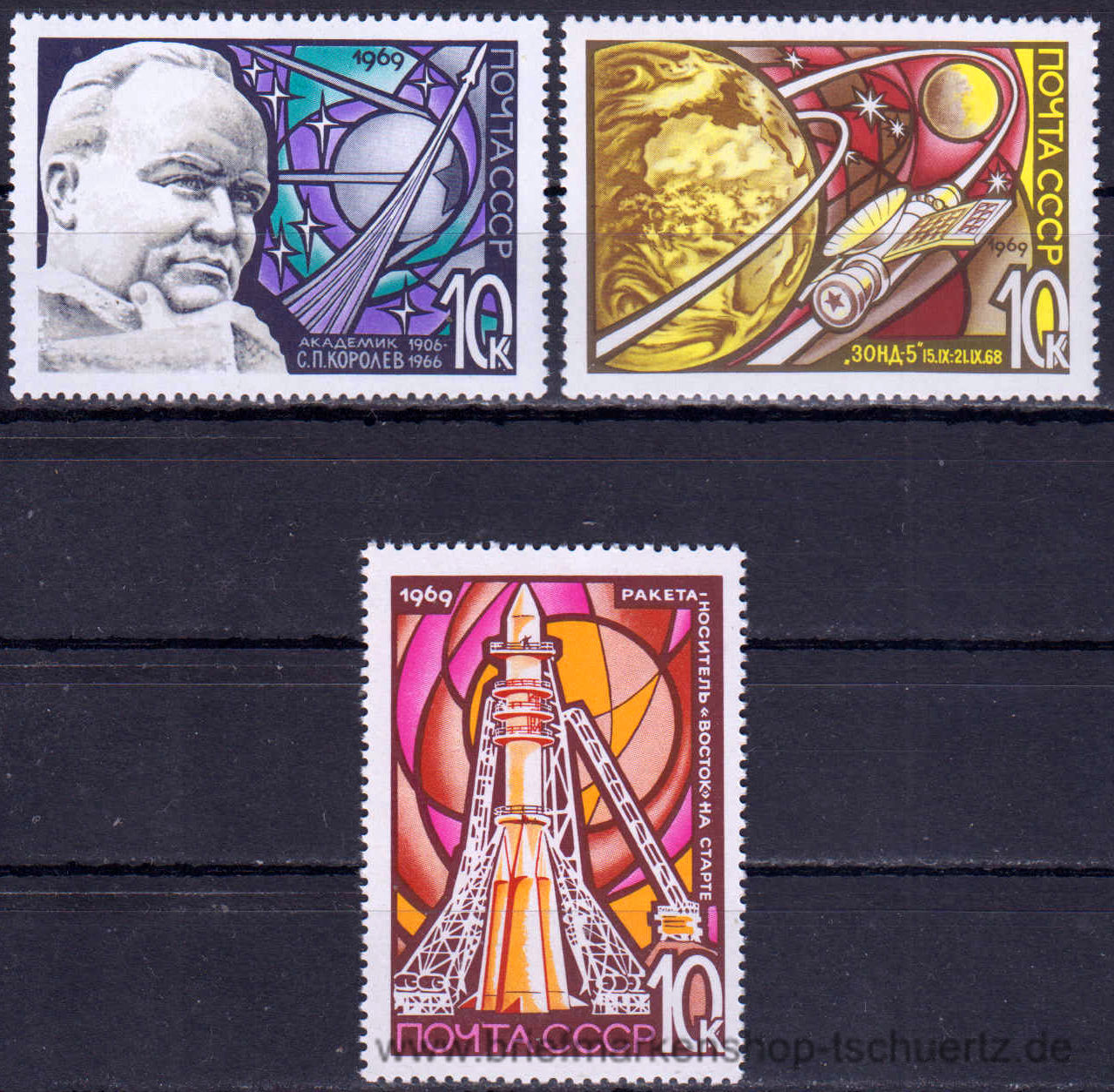 1969, Tag der KosmonautenSatz (3 W.), postfrisch