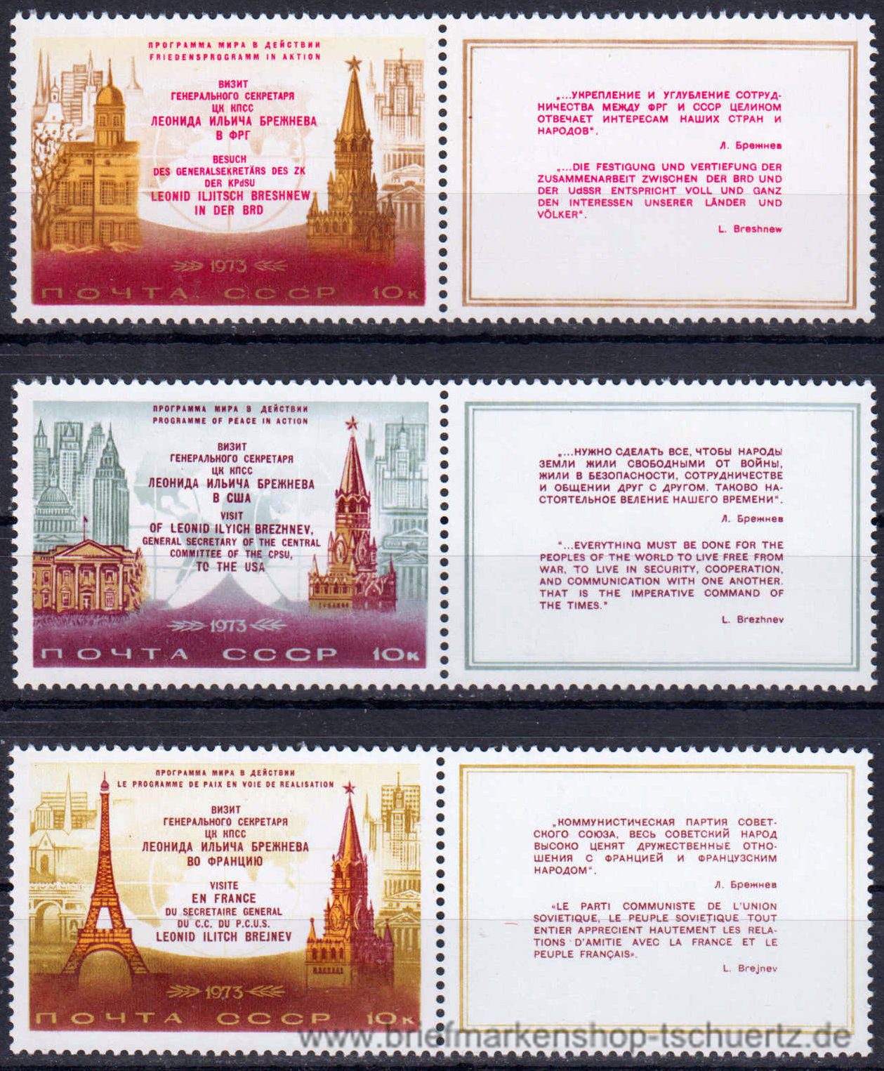 1973, StaatsbesucheSatz (3 W.), Marken mit Zierfeld, postfrisch