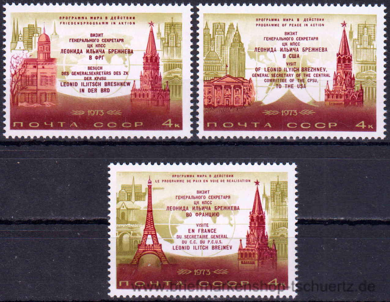 1973, Staatsbesuche von BreschnewSatz (3 W.), Marken aus Block, postfrisch