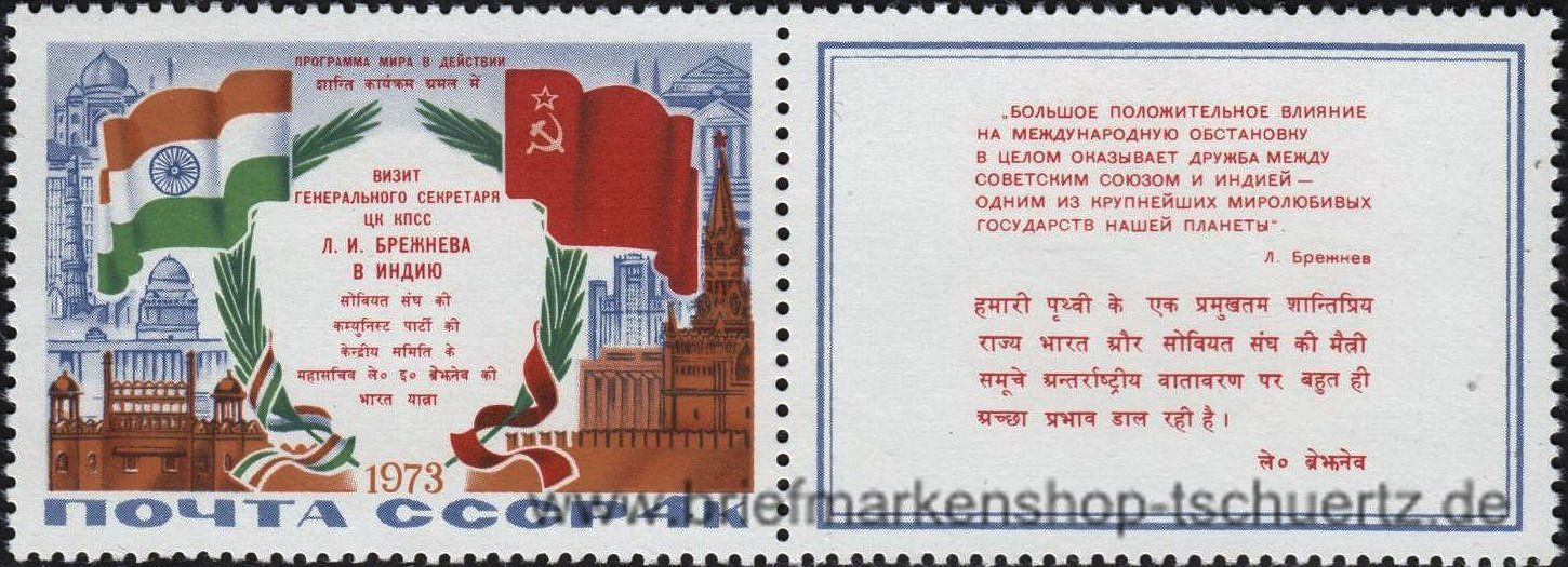 1973, Staatsbesuche von BreschnewSatz (1 W.), Marke mit Zierfeld, postfrisch