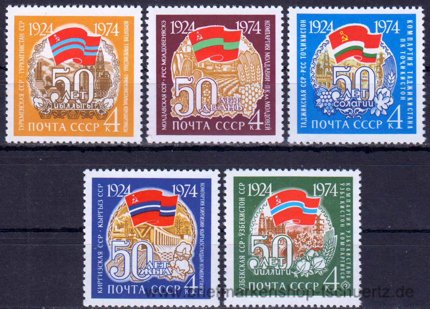 1974, 50 Jahre UnionsrepublikenSatz (5 W.), postfrisch