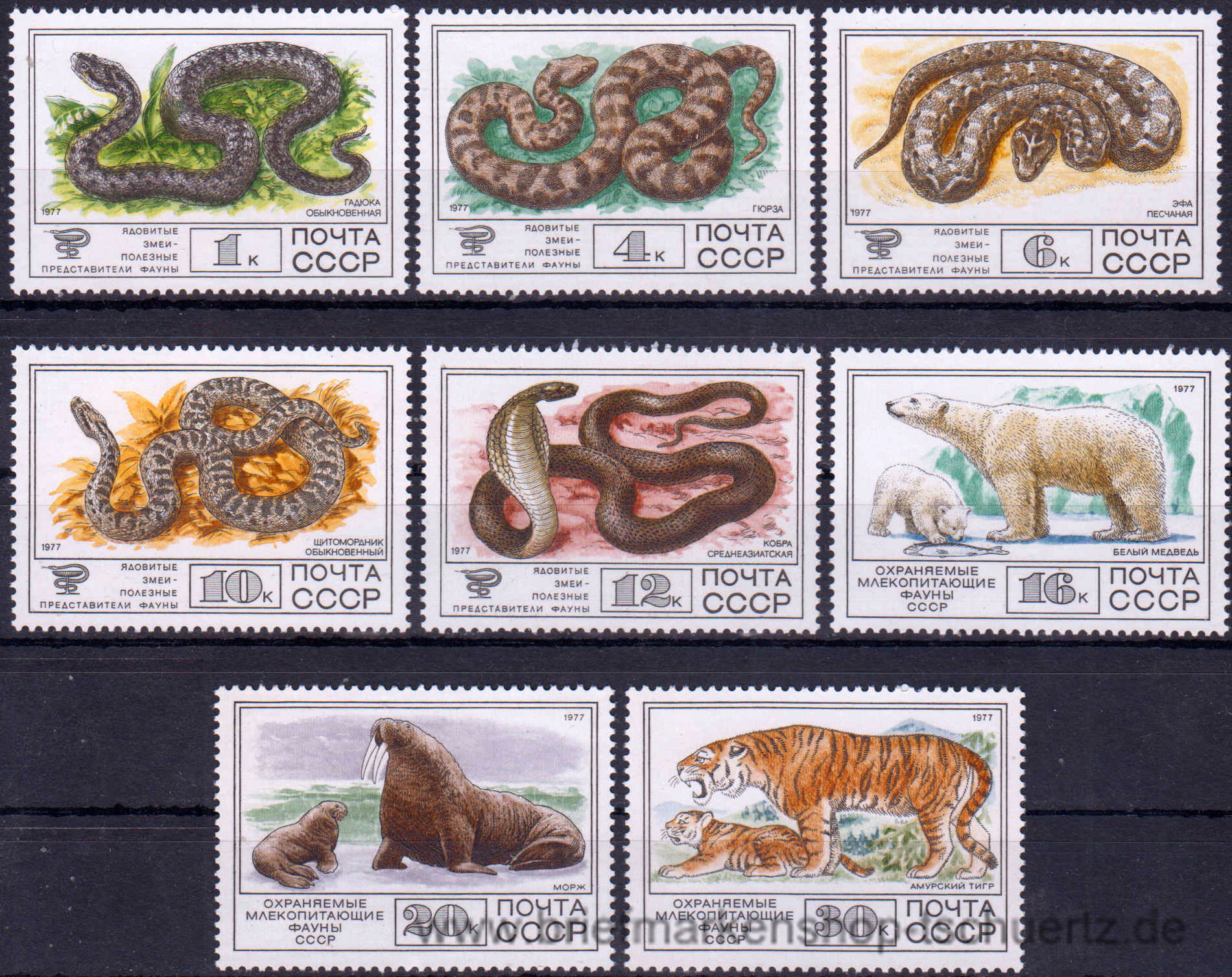 1977, Giftschlangen und SäugetiereSatz (8 W.), postfrisch