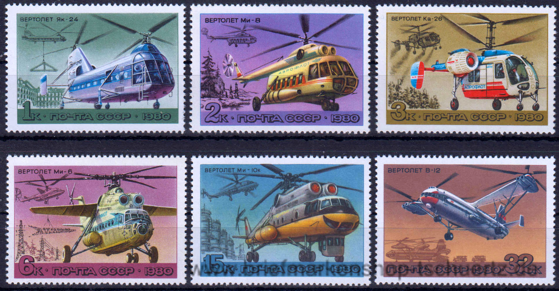 1980, Hubschrauber der AEROFLOTSatz (6 W.), postfrisch