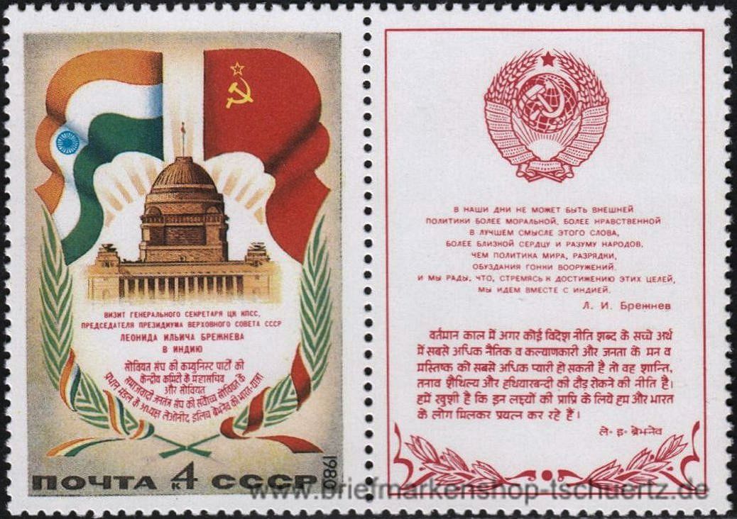 1980, Besuch von Breschnew in IndienSatz (1 W.), Marke mit Zierfeld, postfrisch