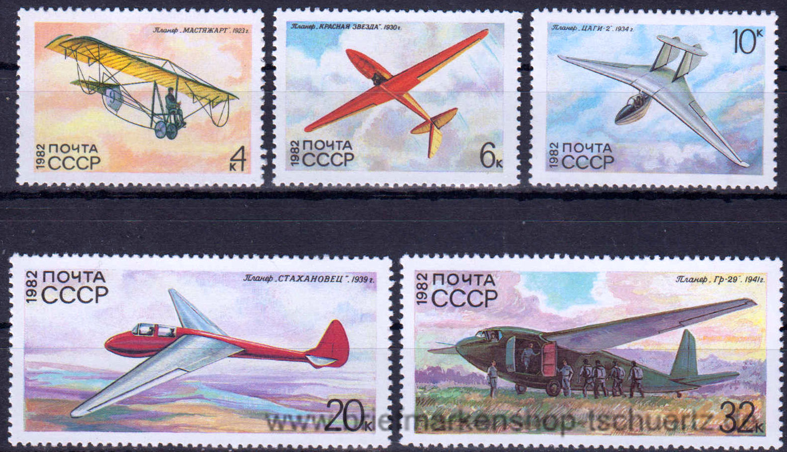 1982, SegelflugzeugeSatz (5 W.), postfrisch