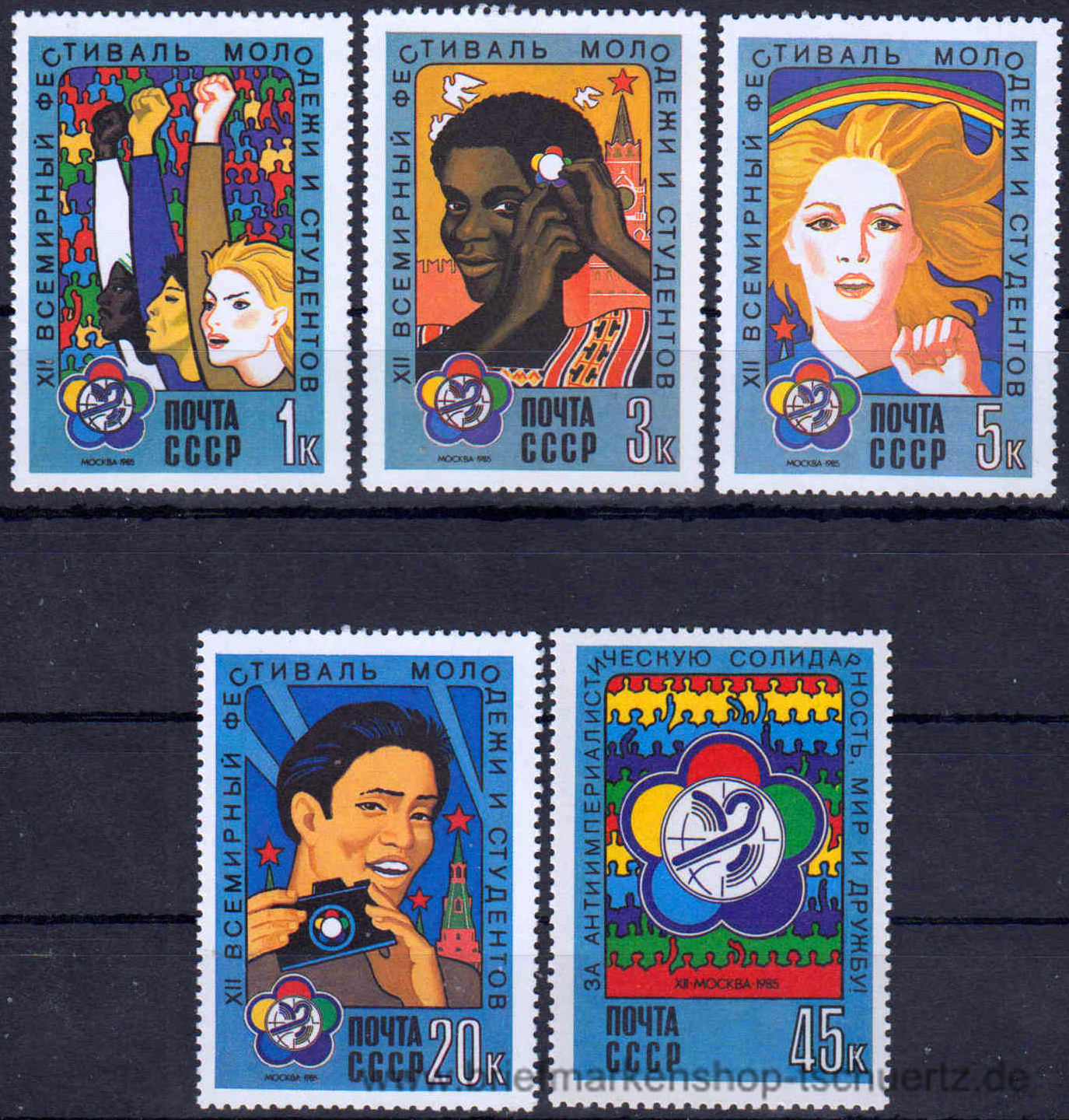 1985, Weltfestspiele der Jugend Satz (5 W.), postfrisch