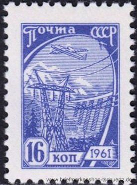 1961, Freimarken: Sozialismus16 K - Flugzeug und Hochspannungsleitung, StaumauerEinzelmarke, postfrisch