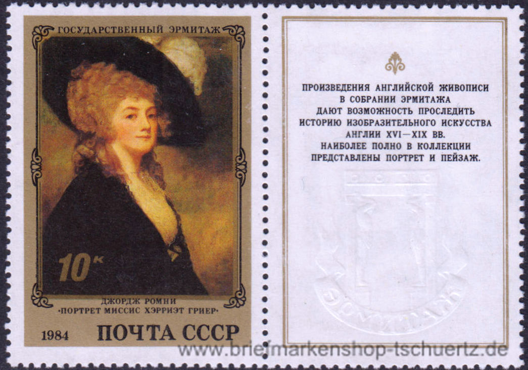 1984, Gemälde englischer Meister10 K - Porträt von Mrs. Harriet Greer; von George RomneyEinzelmarke mit Zierfeld links, postfrisch