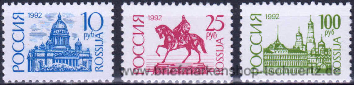 1992, Freimarken: Bauwerke und Denkmälergestrichenes PapierSatz (3 W.), postfrisch