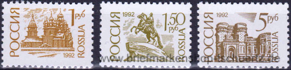 1992, Freimarken: Bauwerke und Denkmälergestrichenes PapierSatz (3 W.), postfrisch