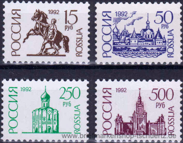 1992, Freimarken: Bauwerke und SymboleRastertiefdruck, gezähnt K 11 1/2 : 12, gestrichenes PapierSatz (4 W.), postfrisch