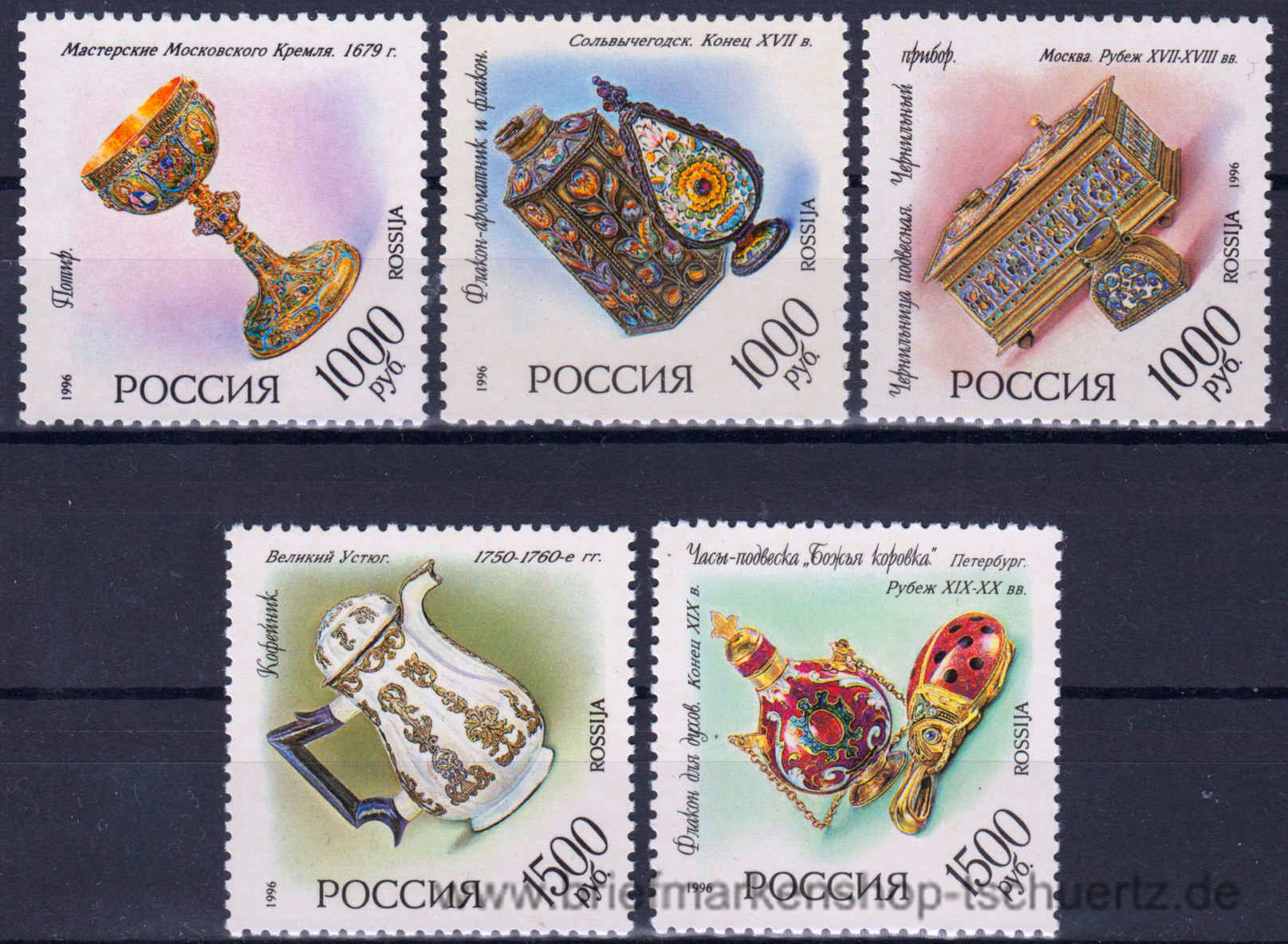 1996, Emailkunst aus dem Eremitage-MuseumSatz (5 W.), postfrisch