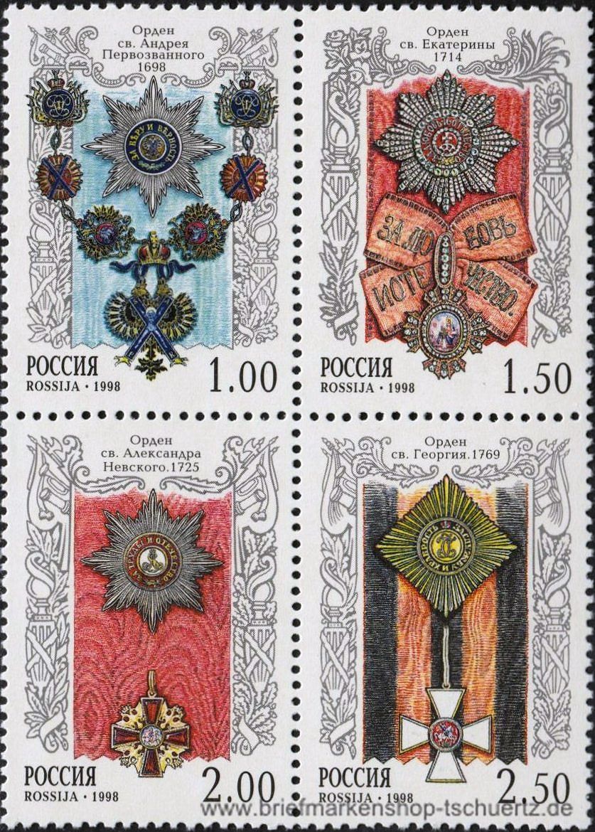 1998, Geschichte des russischen StaatesSatz (4 W.), Viererblock, postfrisch