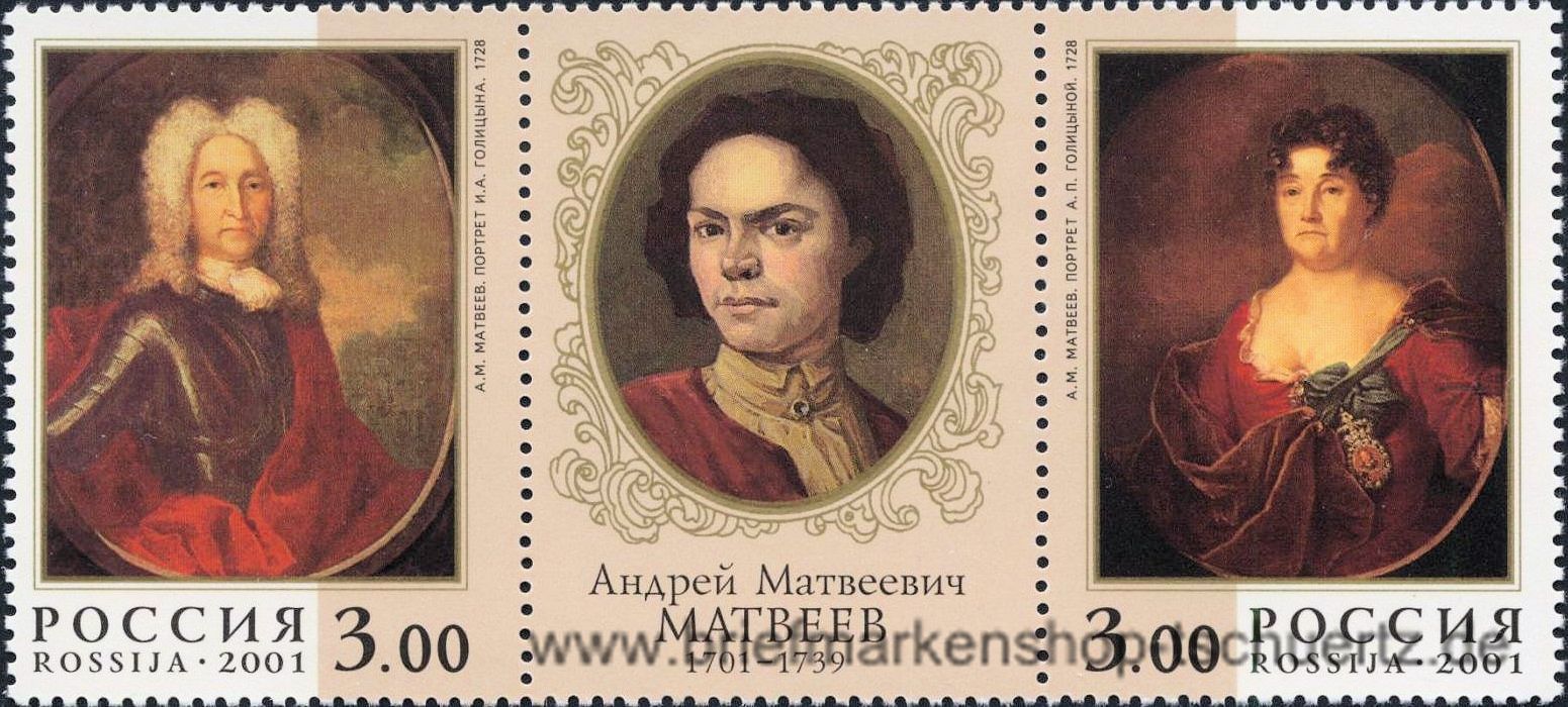 2001, 300. Geburtstag von Andrej MatwejewSatz (2 W.), Dreierstreifen, postfrisch