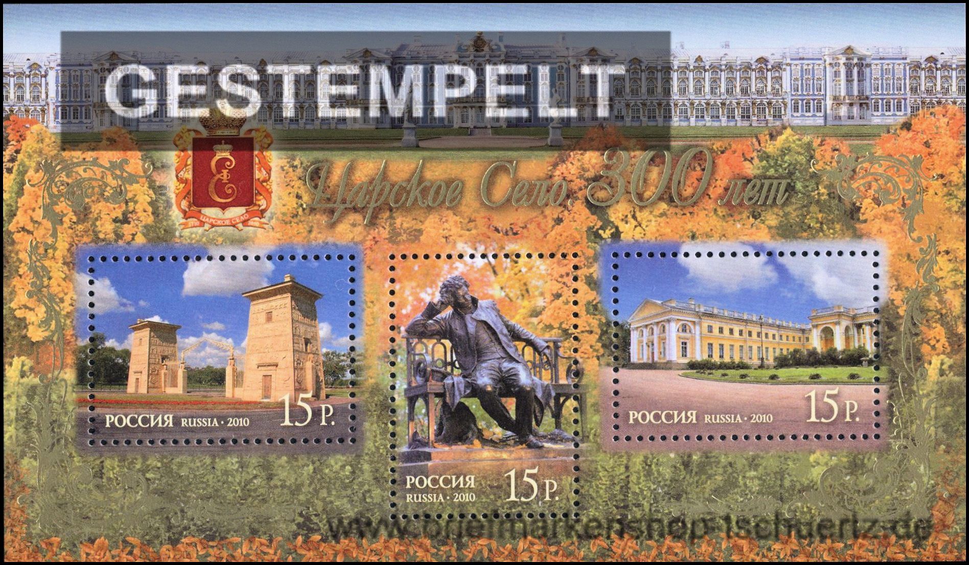 2010, 300 Jahre Zarskoje Selo Blockausgabe, gestempelt