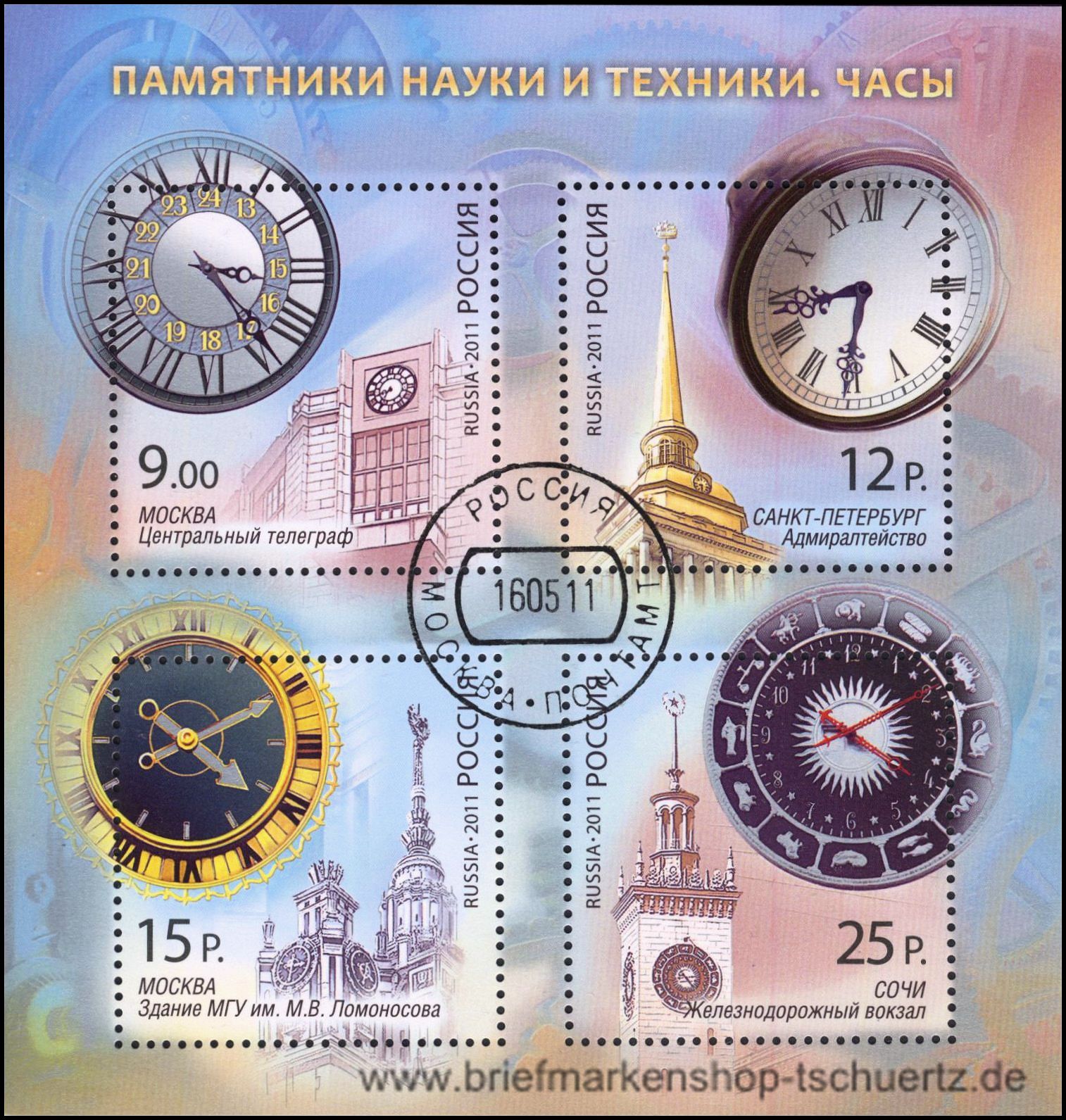 2011, Technische Denkmäler - Turmuhren Blockausgabe, gestempelt