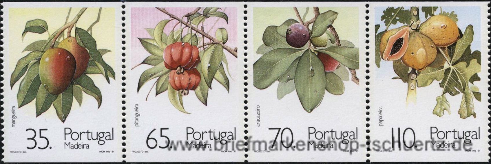 1991, Freimarken: Subtropische Früchtesenkrecht gezähntSatz (4 W.), Viererstreifen, postfrisch