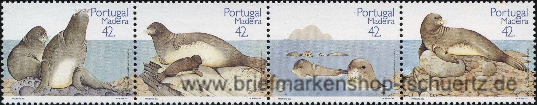 1993, Mittelmeer-Mönchsrobbensenkrecht gezähntSatz (4 W.), Viererstreifen, postfrisch