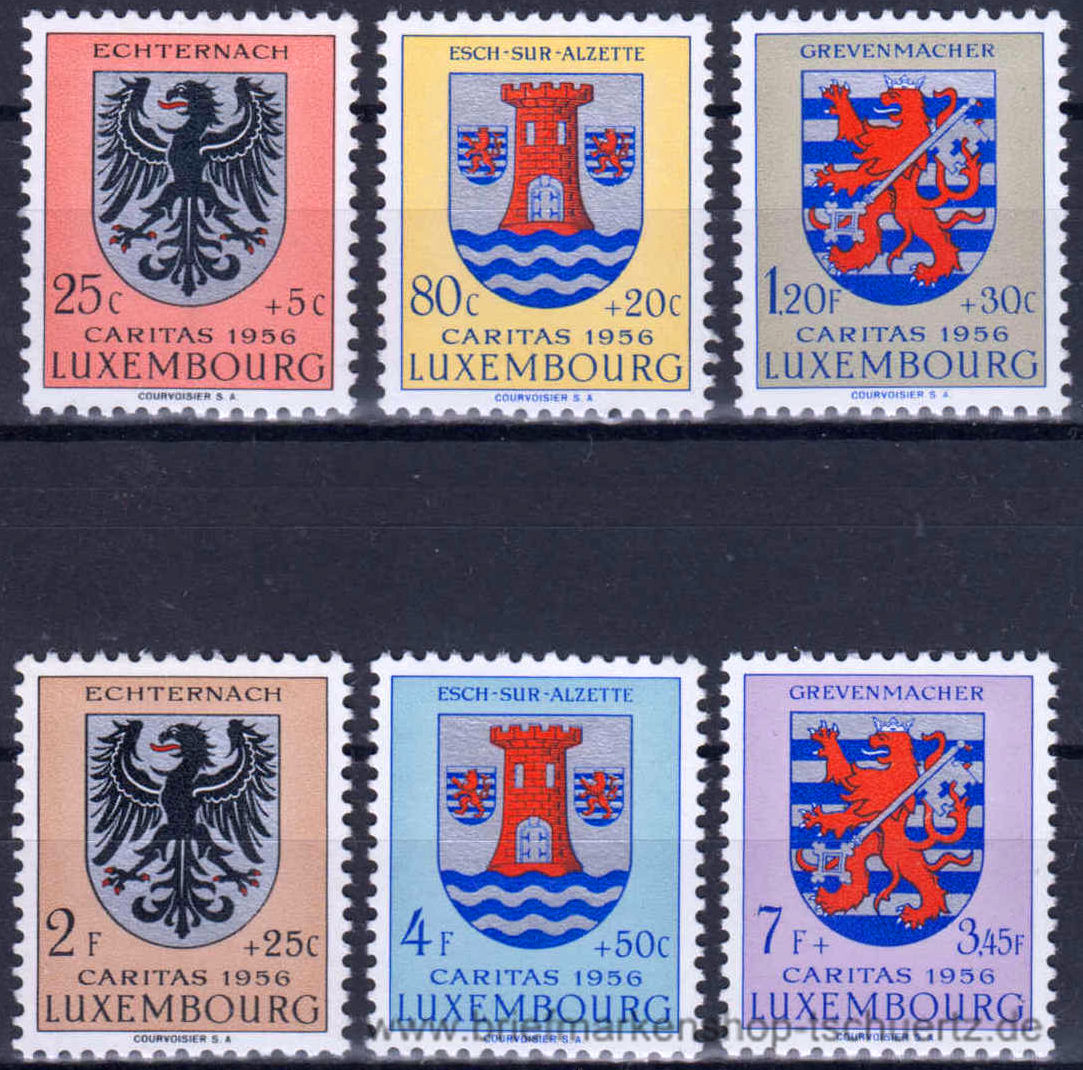 1956, Caritas: Kantonalwappen Satz (6 W.), postfrisch