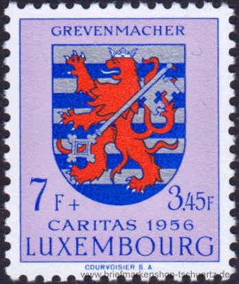 1956, Caritas: Kantonalwappen 7 Fr + 3.45 Fr - Grevenmacher Einzelmarke, postfrisch