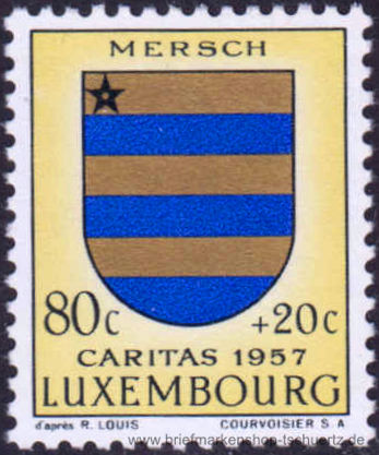 1957, Caritas: Kantonalwappen 80 C + 20 C - Mersch Einzelmarke, postfrisch