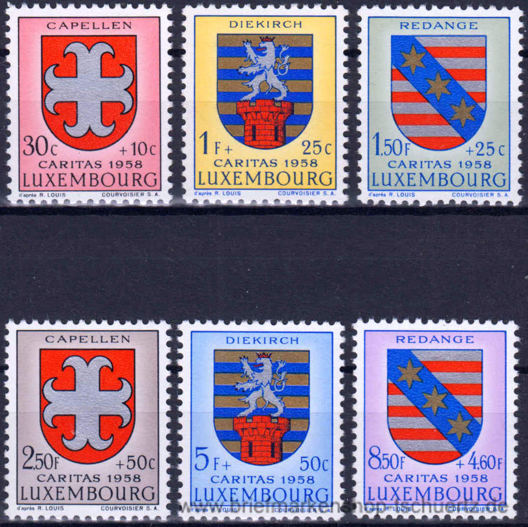 1958, Caritas: KantonalwappenSatz (6 W.), postfrisch