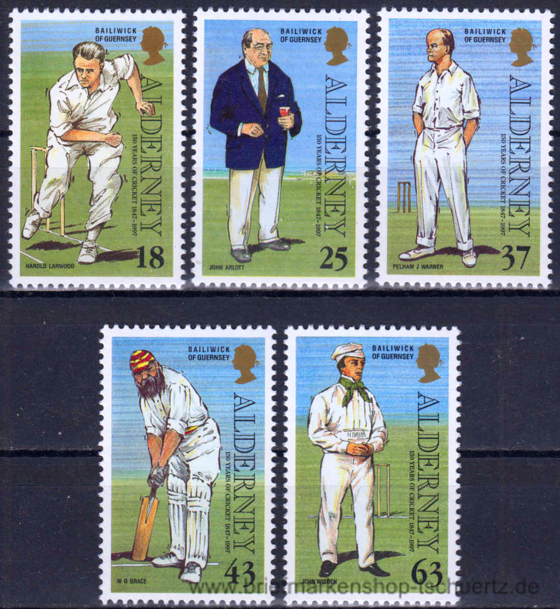 1997, Kricket auf AlderneySatz (5 W.), postfrisch