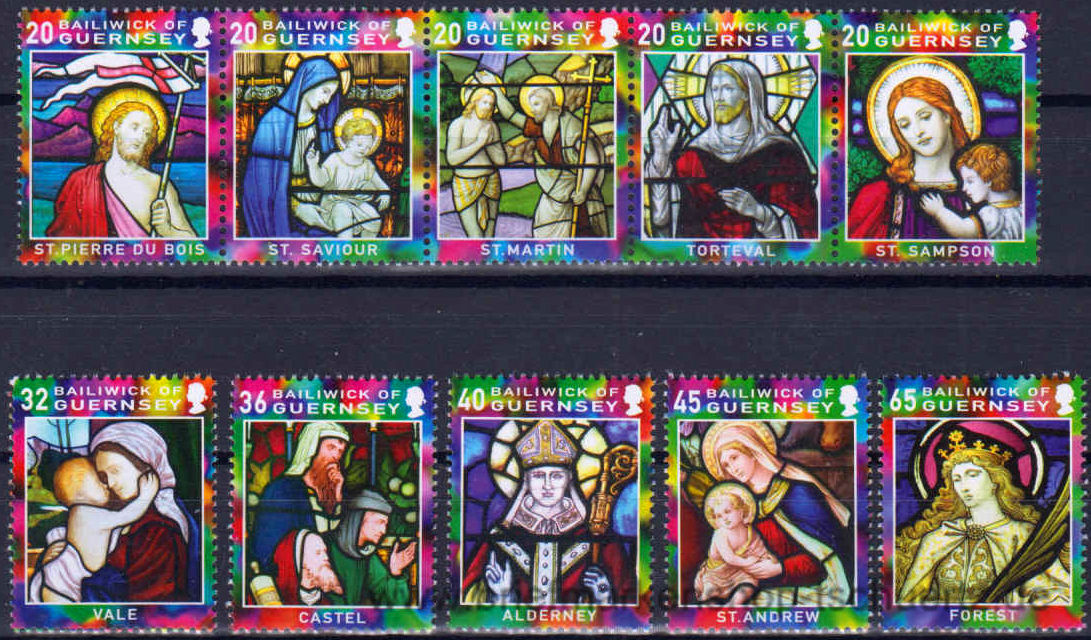 2005, Weihnachten Satz (10 W.), Fünferstreifen + 5 Werte, postfrisch