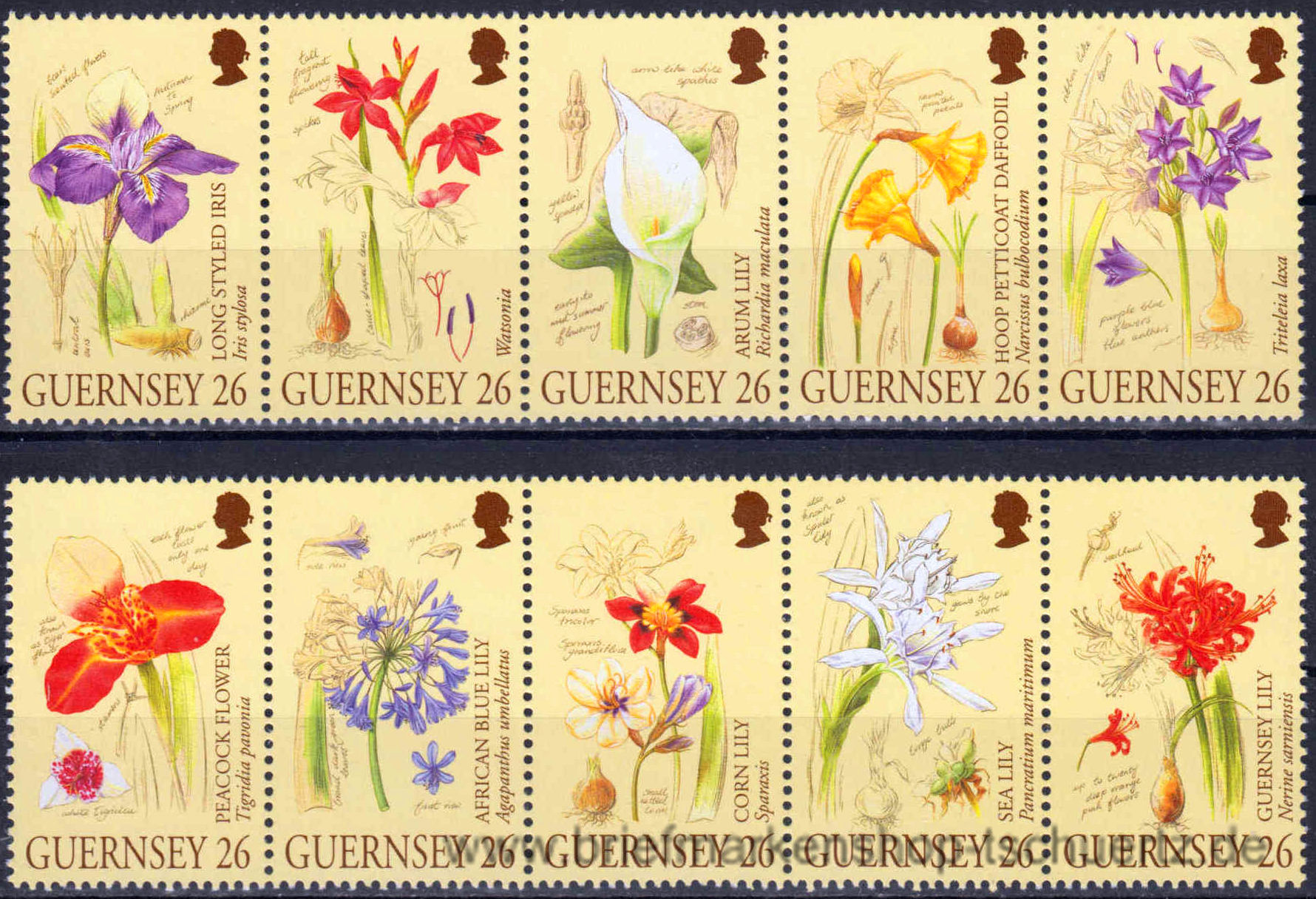 2000, LiliengewächseSatz (10 W.), 2 Fünferstreifen, postfrisch